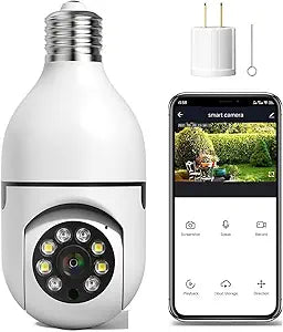 - 💡【HD de 3 MP y visión nocturna clara】La cámara de seguridad de bombilla de vigilancia de 3 MP es capaz de proporcionar imágenes más claras y detalladas, lo que te ayuda a deshacerte de la calidad de imagen borrosa. La función de visión nocturna HD de la cámara panorámica WiFi y la visión nocturna infrarroja y la visión nocturna de luz blanca se pueden cambiar libremente, la bombilla de la cámara puedes ver imágenes claras incluso en completa oscuridad. Solo es compatible con WiFi de 2.4 GHz (no es compatible con WiFi de 5 GHz).
